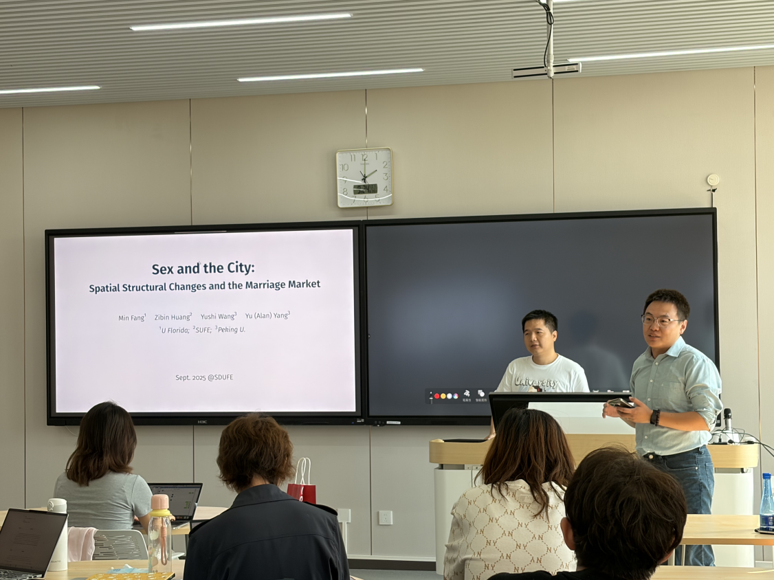 2025年9月24日下午2时,565net必赢官方网在沙河校区二教215教室举办“中青年学者讲座”2025年秋季学期第2讲。本次讲座特邀上海财经大学商学院黄子彬副教授主讲,主题为“Spatial Structural Changes and the Marriage Market”。本次活动由565net必赢官方网科研创新专项工作主任赵扶扬主持、由565net必赢官方网青年科研创新团队支持,30余位565net必赢官方网师生共同参与。