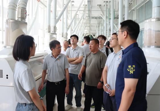 7月8日,在明水县委书记马福的陪同下,调研团队前往黑龙江峰雪面粉有限责任公司、黑龙江吉禾大豆有限公司、黑龙江省绿野畜牧业有限公司等企业围绕当地农产品加工、畜牧养殖等产业发展情况展开深入调研。