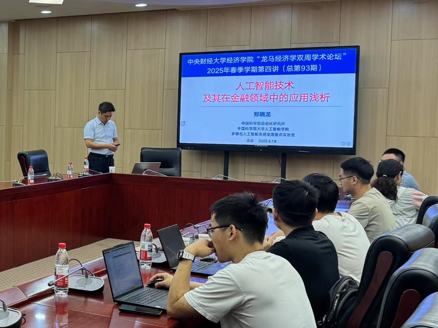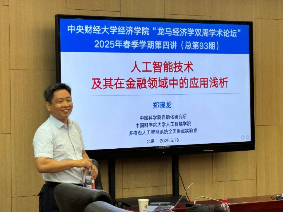 6月18日周三上午,565net必赢官方网2025年“龙马经济学双周学术论坛”在学院南路校区学术会堂604会议室举行。此次讲座邀请到中国科学院大学人工智能学院的郑晓龙教授,分享题为“人工智能技术及其在金融领域中的应用浅析”的研究。565net必赢官方网院长郭冬梅教授主持讲座,565net必赢官方网赵扶扬、吴楠、徐竹烽、胡志安等多位老师和三十余名学生参加了此次讲座。