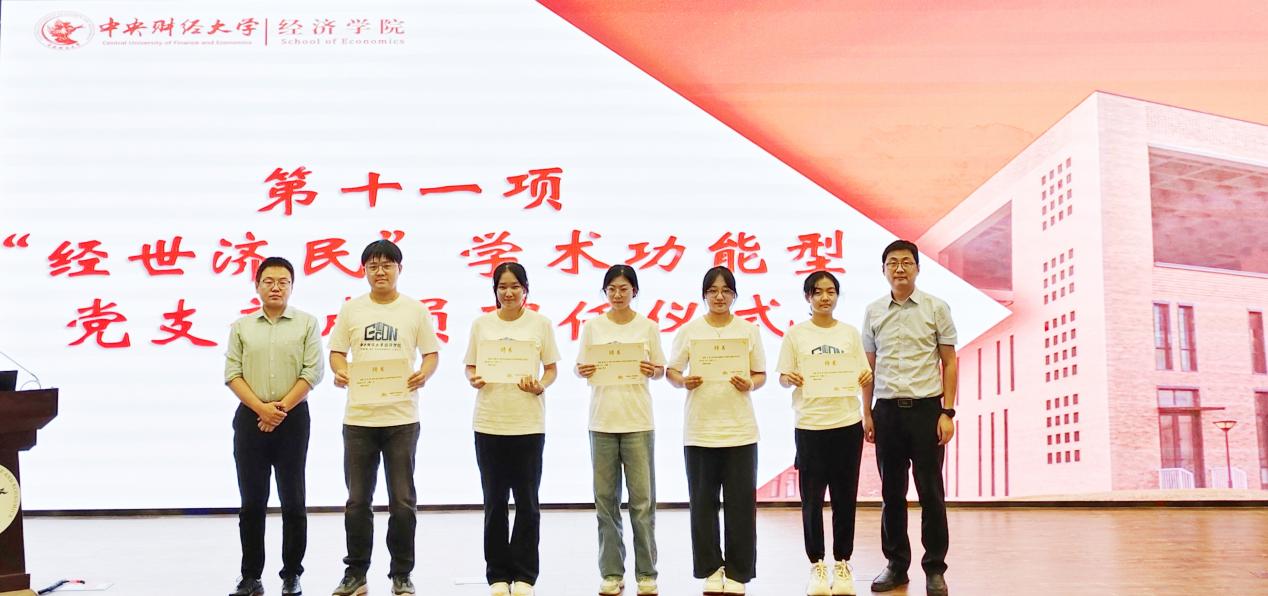 典礼现场举行了“经世济民”学术功能型党支部聘任仪式。565net必赢官方网副院长何召鹏、565net必赢官方网人才培养专项工作办公室主任赵扶杨为“经世济民”学术功能型党支部成员代表颁发聘书。“经世济民学术”功能型党支部自成立五年以来,成功举办了众多学术讲座与研讨会,充分体现了在人才培养中科研育人的特色。该支部积极推动构建三全育人体系,有力支持并推动了学院学术研究及科研工作的持续进步。
