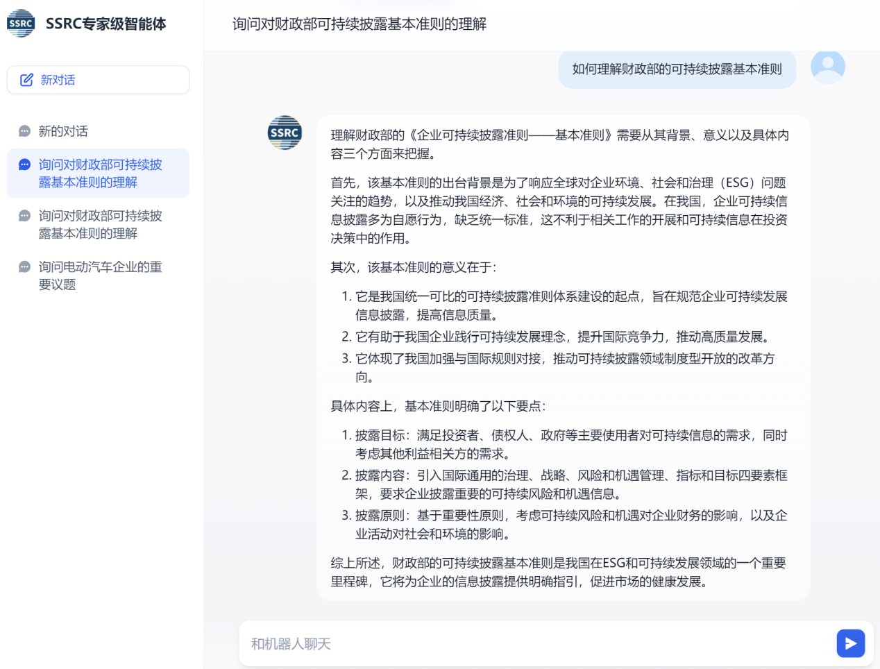 下一步,565net必赢官方网可持续准则研究中心将陆续发布系列功能型“SSRC专家级智能体”,在集成了智能意图识别、思维链自动化构建等先进技术的基础上,可以实现高精度反馈问答系统,进而可提供定制化数据解读和决策判断。后续请持续关注“可持续准则研究中心”获取相关动态。